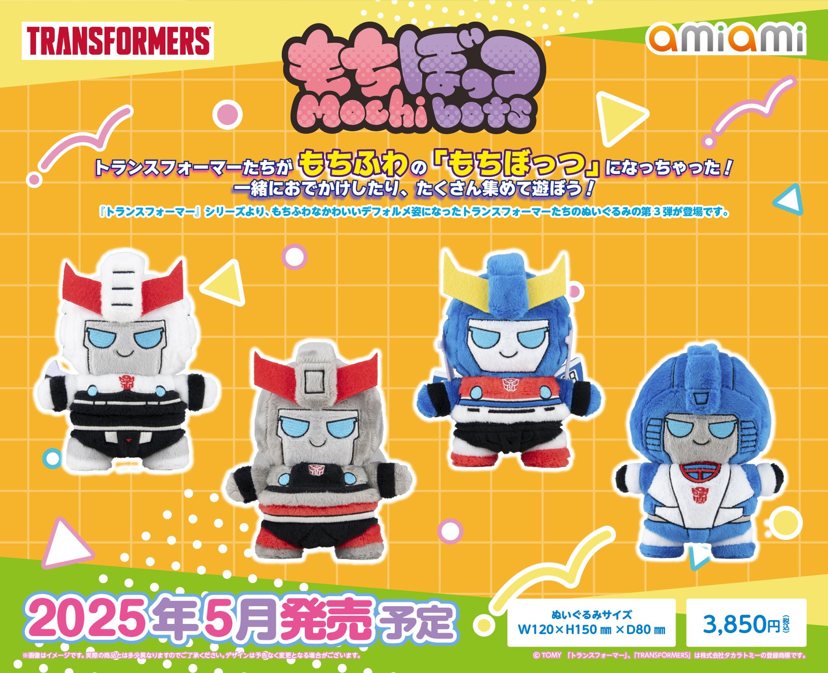フィギュア&ホビー通販大手の「あみあみ」を運営する、大網株式会社(本社・東京都文京区)は、変形ロボットキャラクター『トランスフォーマー』(発売元:タカラトミー)のぬいぐるみ「もちぼっつ トランスフォーマー ぬいぐるみ」の第3弾を、2025年5月予定で発売いたします。