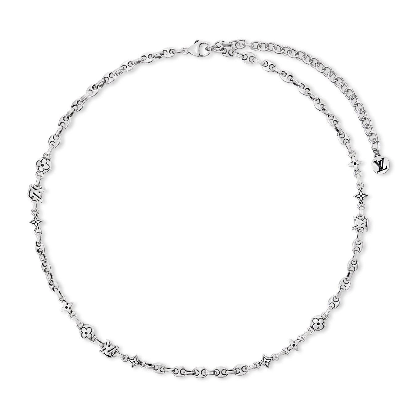 マリンテイストが息づく普段使いのアクセサリーとして、さりげない存在感を添える「ネックレス·LV セーラー ミニ」。光沢感のあるスターリングシルバーの小ぶりなリンクが連なるチェーンには、メゾンのシグネチャーと、航海用の計器から着想を得た精緻なディテールを融合。伝統を讃えるロマンティックなスタイルが魅力。