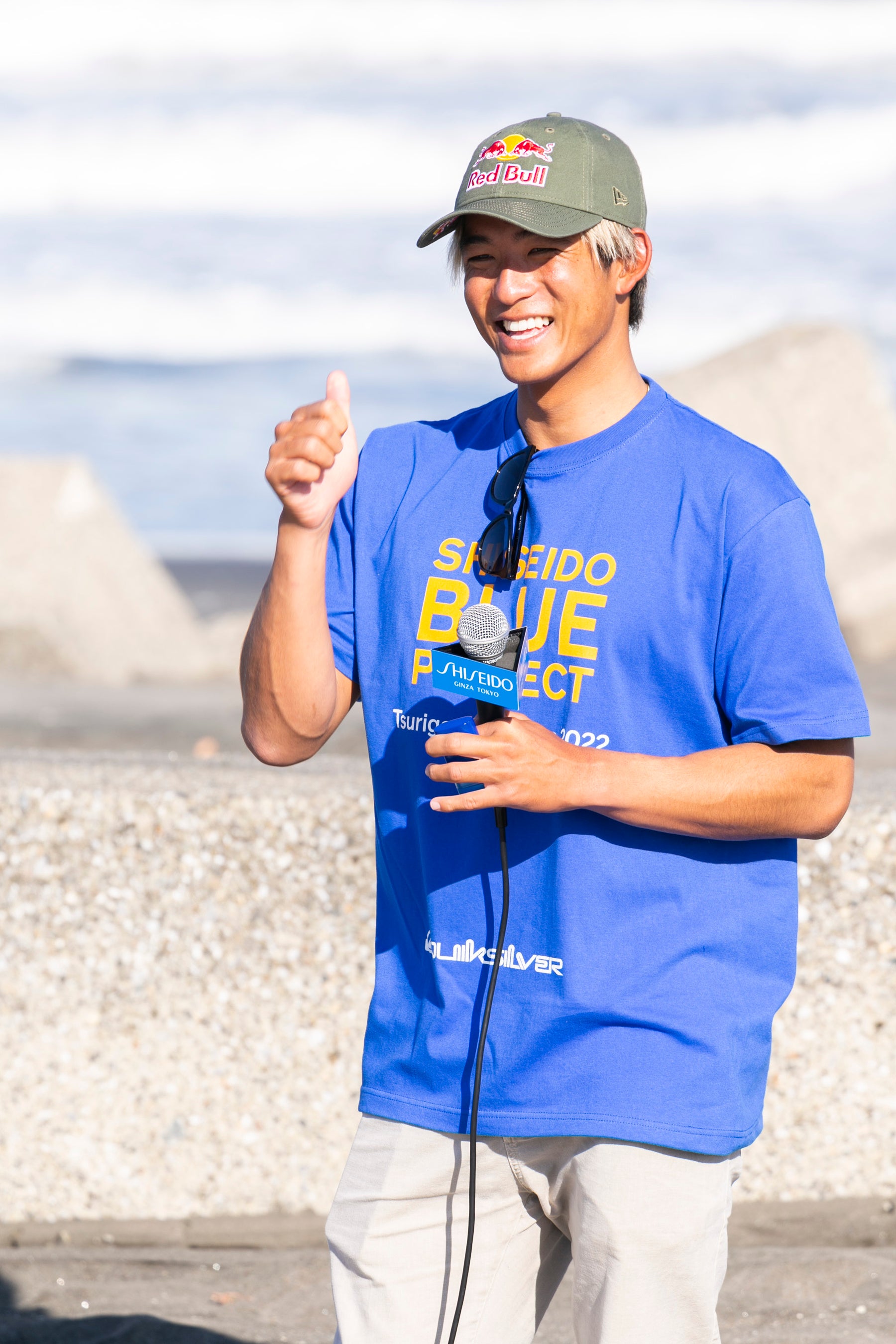 WAOOの活動後に、本プロジェクトアンバサダーである五十嵐カノア選手がSHISEIDO ブースを訪れました。SHISEIDOサンケア商品の中でもスティックタイプの日焼け止め「SHISEIDO クリア サンケア スティック SPF50+・PA++++」を愛用し、「お守り」と話すカノア選手。ブースではヨーロッパのメディア取材にも対応し、幼少期から母親にSHISEIDOのサンケア商品を勧められたことや、クリア サンケア スティックのお気に入りポイントを語り、「使いやすくべた付かない使用感が気に入っている。紫外線から肌を守ることだけではなく、環境に配慮した製品であることから、安心してサーフィンに集中できる」と話し、サンケアの大切さと製品へのリアルなメッセージを語ってくれました。