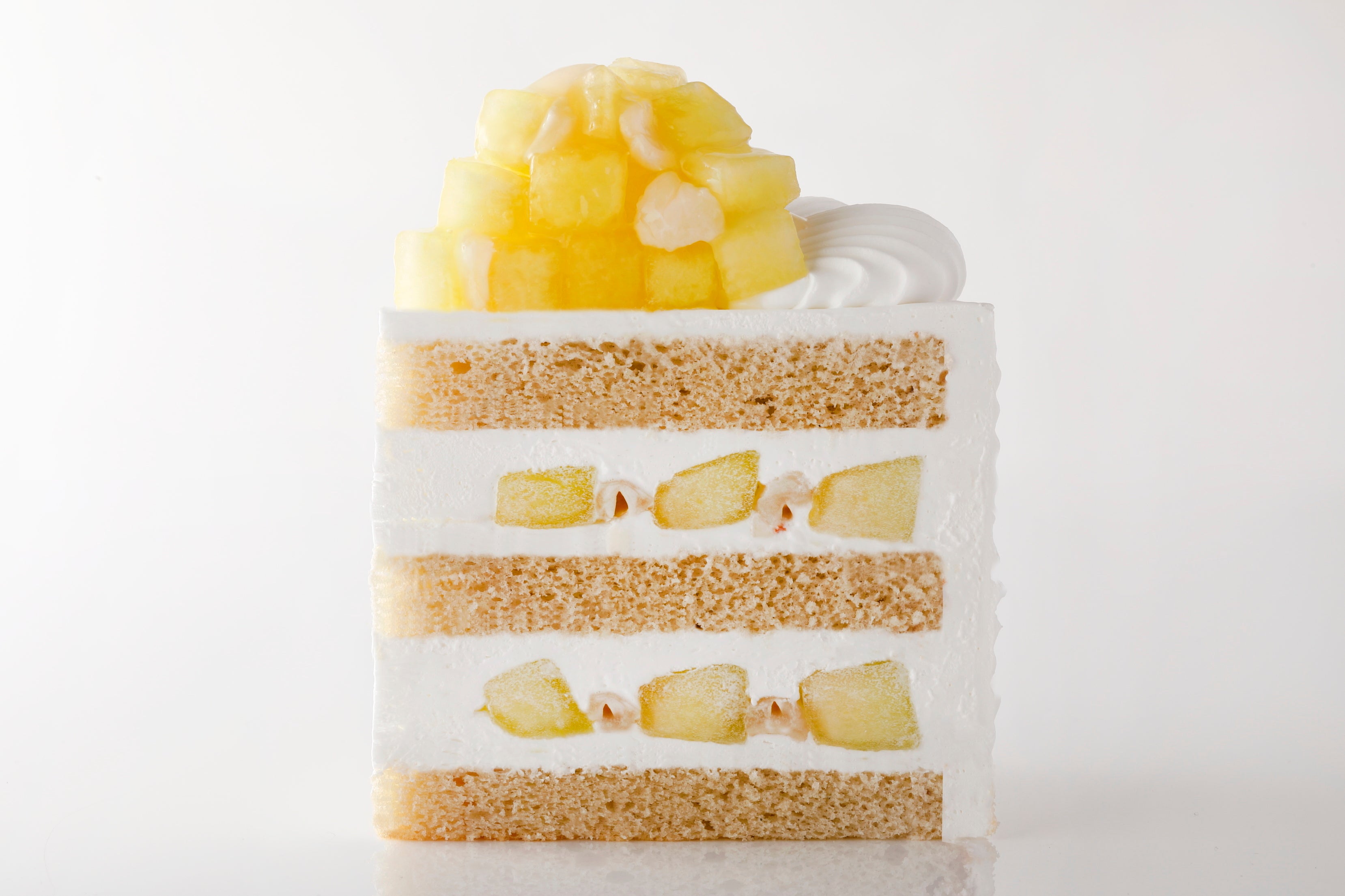 ホテルニューオータニの総料理長 中島眞介氏のオリジナルケーキと焼きたてのパンが楽しめるペストリーブティック。<パティスリーSATSUKI>の中でも、通年でNo.1の売上を誇るシグネチャーメニュー。静岡県産マスクメロンを1ピースに約3分の1個も贅沢に使用。玄米を食べて育った鶏による「玄米卵」を採用したスポンジ生地和三盆糖やバニラビーンズを加えた九州大牟田産の生クリームが、国産メロンの甘さを最大限に引き立たせます。さらにみずみずしいライチの層をプラスし、すっきりとした後味を演出。生地・クリーム・フルーツが三位一体になった最上級のショートケーキです。