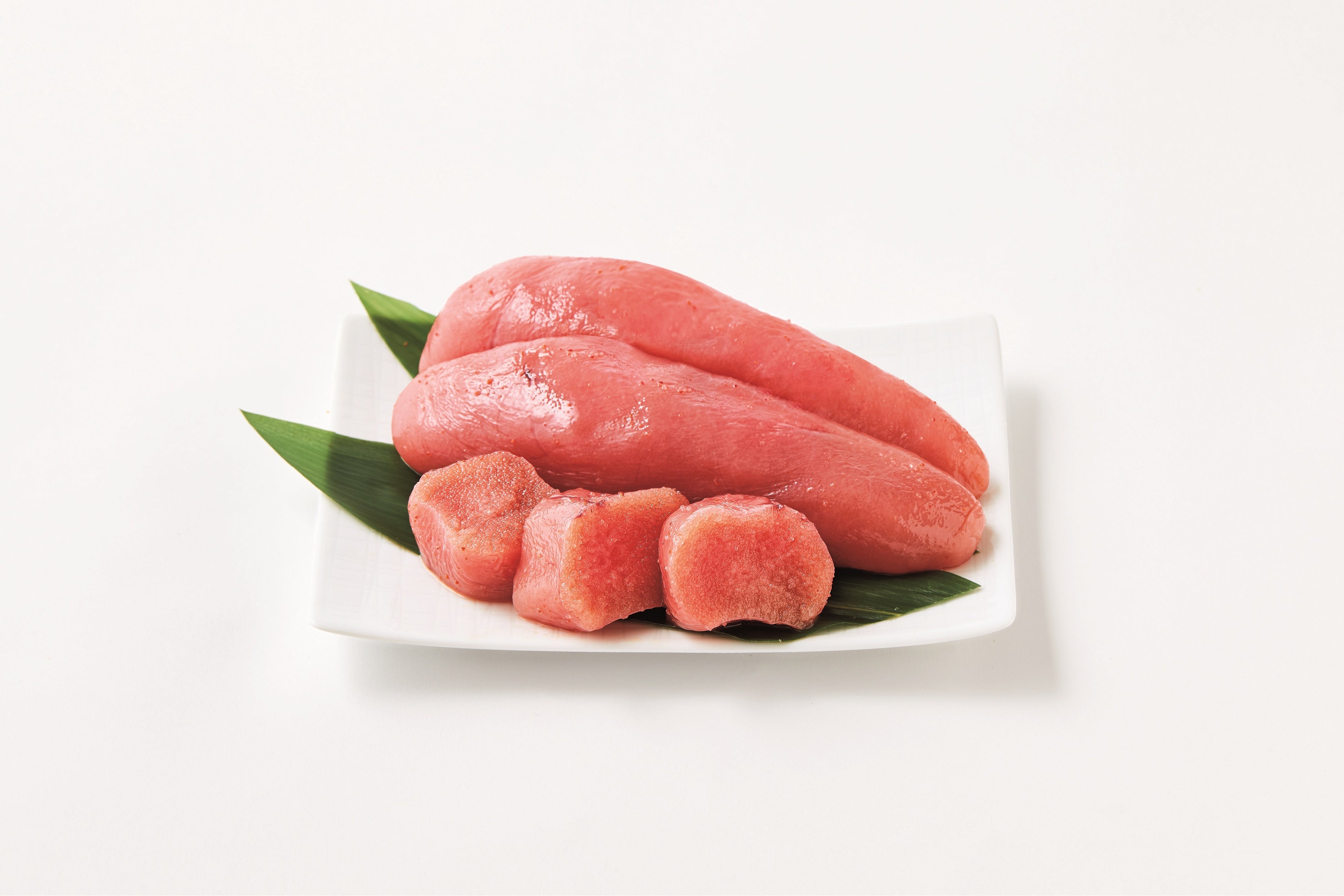 一番人気の「辛子明太子」。その大きさは、一般的な明太子の約3倍!インパクトのある大きさもさることながら、ひと粒ひと粒の大きさ、食感、密集具合い、味わいなどすべての条件が納得のクオリティです。食べ応えも抜群です。