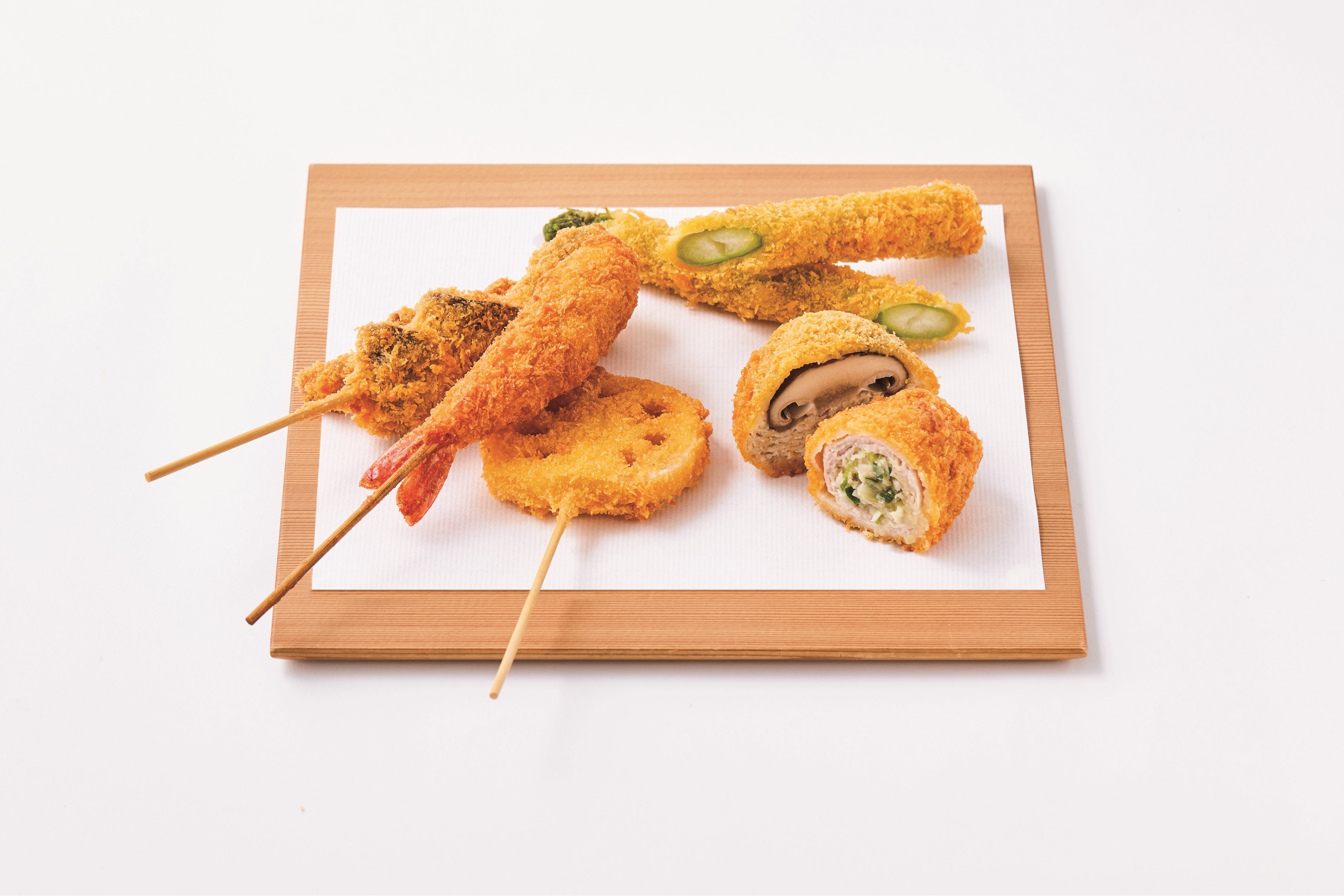 会津地鶏や会津産豚、地物野菜を使った串かつを、常時15〜16種類提供する福島の有名店。