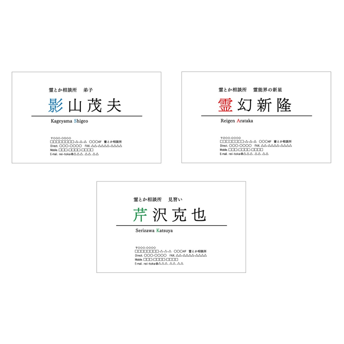 さらに、入場特典として、「霊とか相談所」の名刺がどれか1枚もらえます。