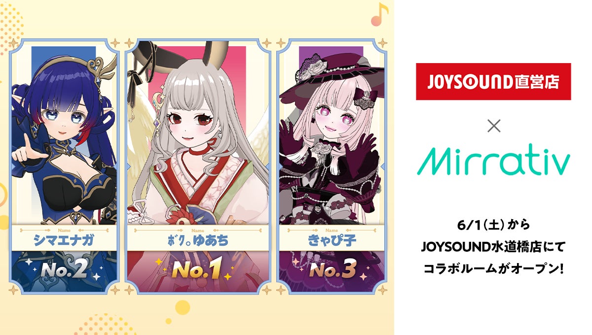 株式会社エクシングの子会社で、全国にカラオケ店舗を展開する株式会社スタンダード(本社:東京都港区、代表取締役社長:米田洋一)は、2024年6月1日(土)から2024年6月30日(日)までの期間中、JOYSOUND水道橋店(東京)にスマホゲーム配信者数で日本一のライブ配信プラットフォーム※1”Mirrativ”のコラボルームをオープンします。