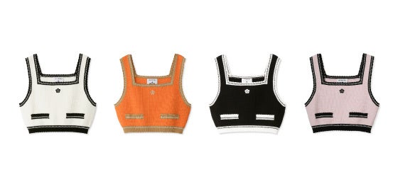 コラボレーションを記念して、クロップドニットビスチェとバイカラーパフニットカーデの限定カラー「PNK」を下記の2店舗限定で発売いたします。