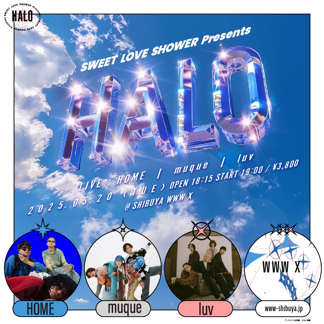 音楽専門チャンネルスペースシャワーTVをはじめ音楽関連事業を展開する株式会社スペースシャワーネットワーク(本社:東京都渋谷区、代表取締役社長:林吉人)は2025年5月20日(火)に渋谷WWW Xにて「SWEET LOVE SHOWER Presents HALO」を開催、 HOME、muque、luvの3組が出演します。