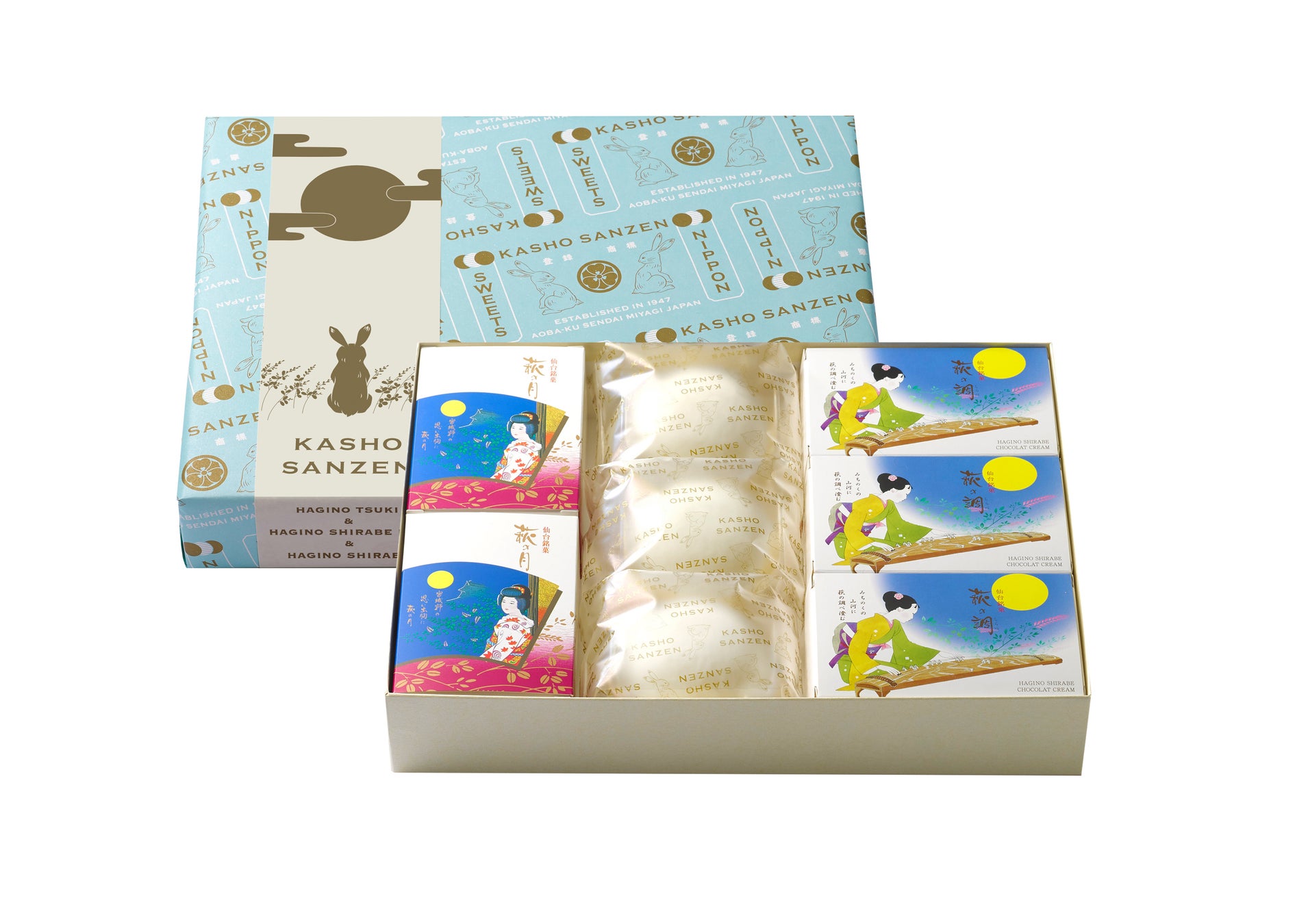 ①《KASHO SANZEN 大丸東京店 オープン記念》 「萩の月」「萩の調 煌」と「萩の調」を詰合せいたしました。
