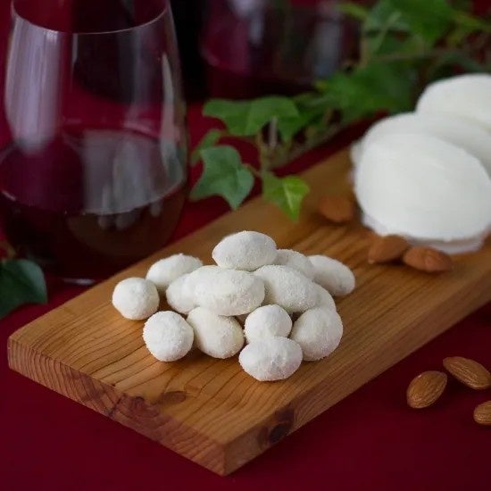 見た目は粉雪のようなふんわり感。ローストアーモンドにクセの無いモッツァレラチーズを合わせ軽い塩味で仕上げました。通常は本店でのお取り扱いしかない人気商品をリニューアル記念でご用意。