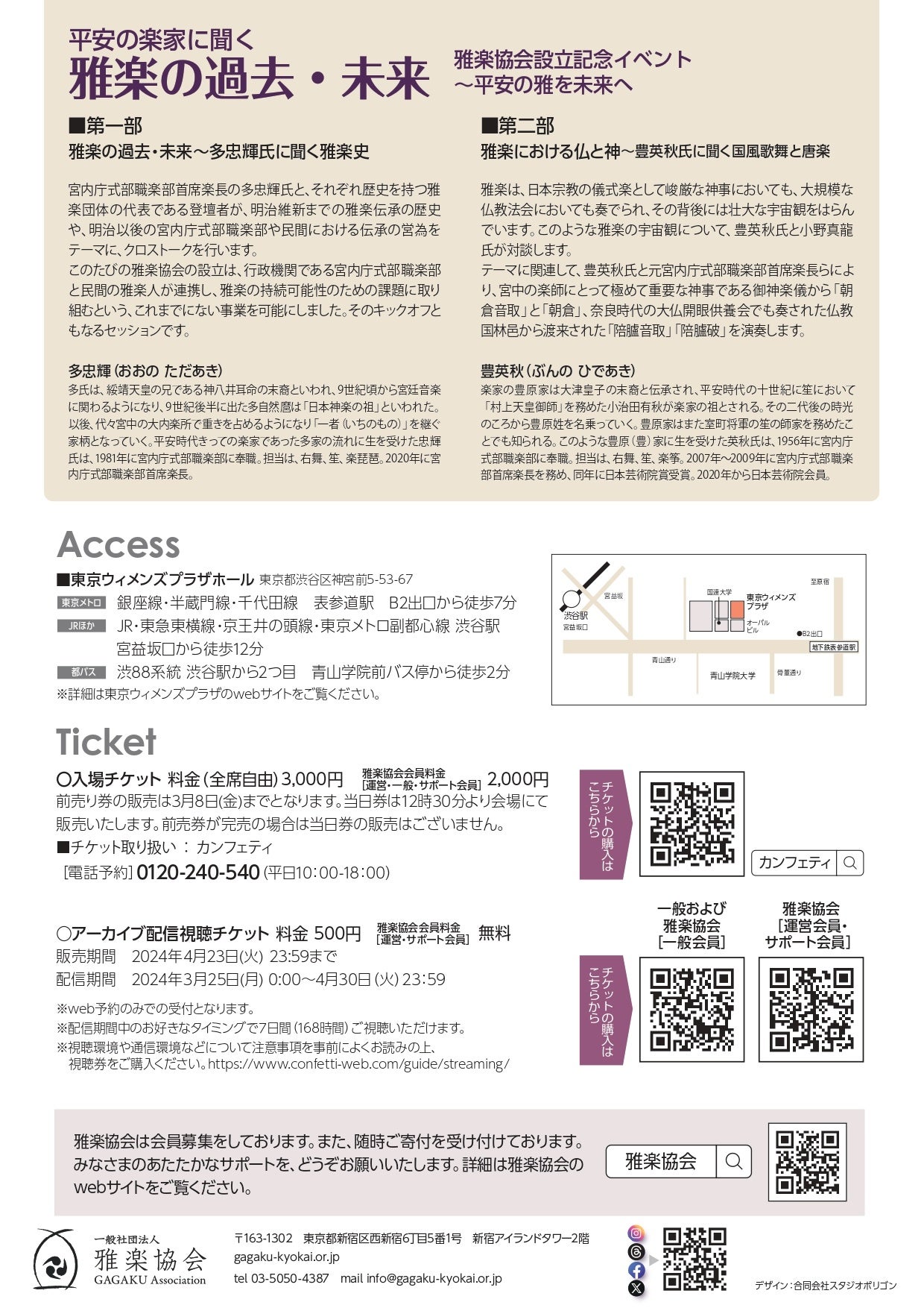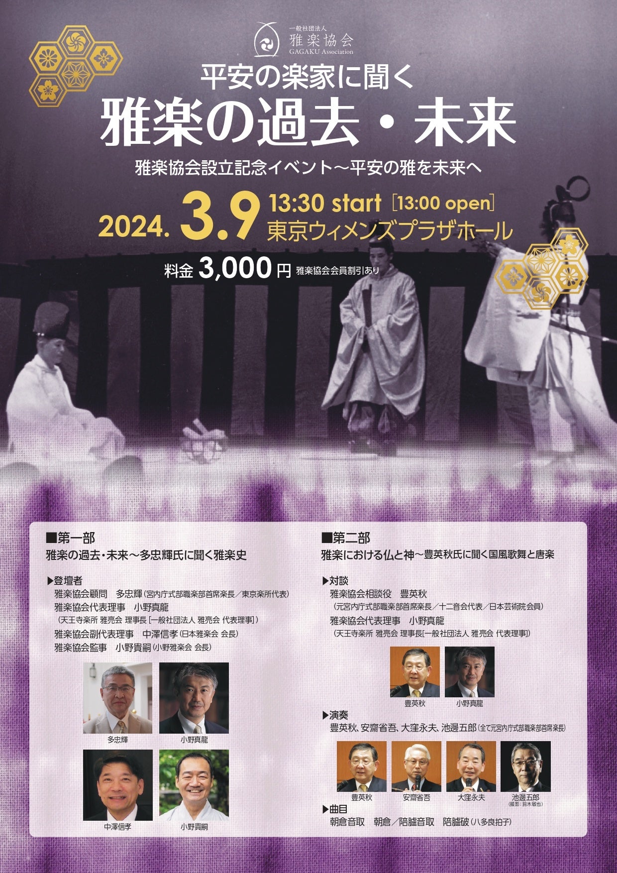 『平安の楽家に聞く雅楽の過去・未来 雅楽協会設立イベント~平安の雅を未来へ』
