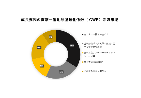 質問: 低地球温暖化係数(GWP)冷媒市場の成長を牽引している要因は何ですか?