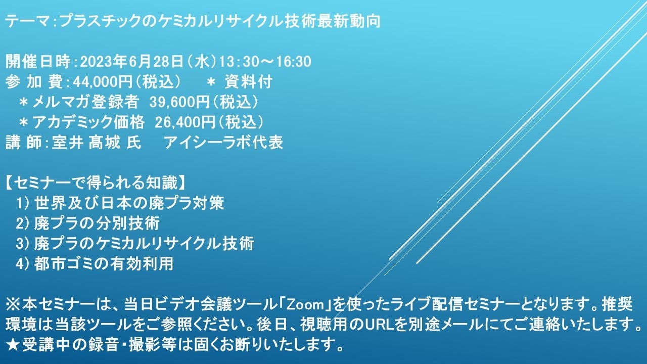【ライブ配信セミナー】プラスチックのケミカルリサイクル技術最新動向 6月28日(水)開催 主催:(株)シーエムシー・リサーチ