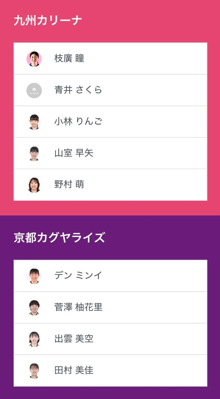 ノジマTリーグ 2025-2026シーズン 公式戦 8月30日開催 九州カリーナ vs 京都カグヤライズのベンチ入り選手を発表いたします。