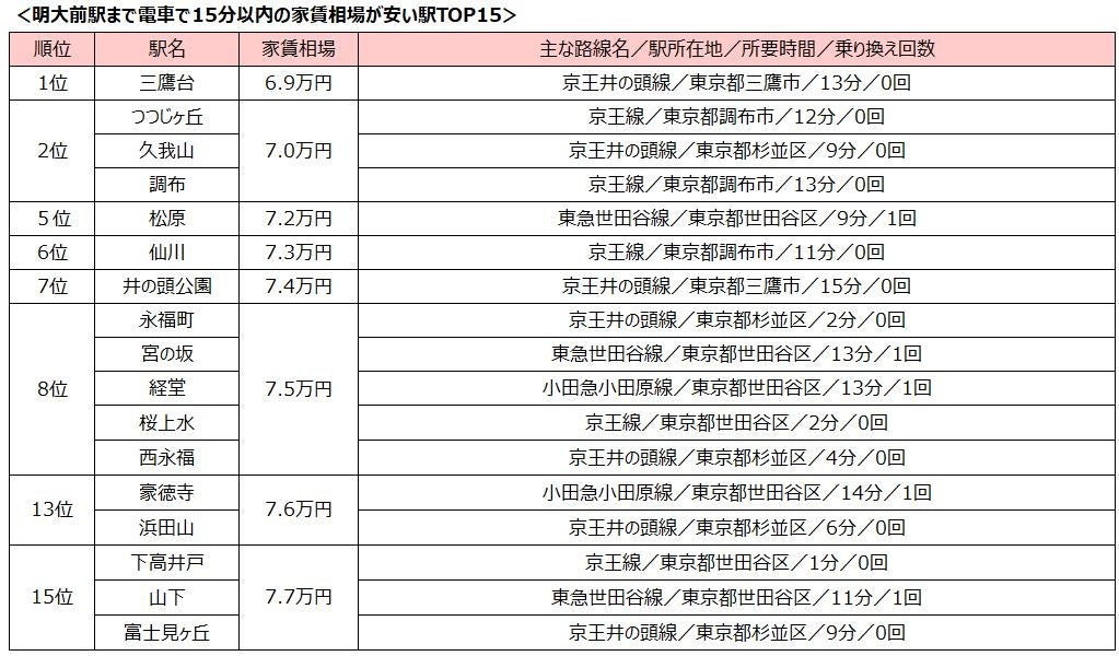 【調査対象駅】SUUMOに掲載されている明大前駅まで15分以内の駅(掲載物件が20件以上ある駅に限る)