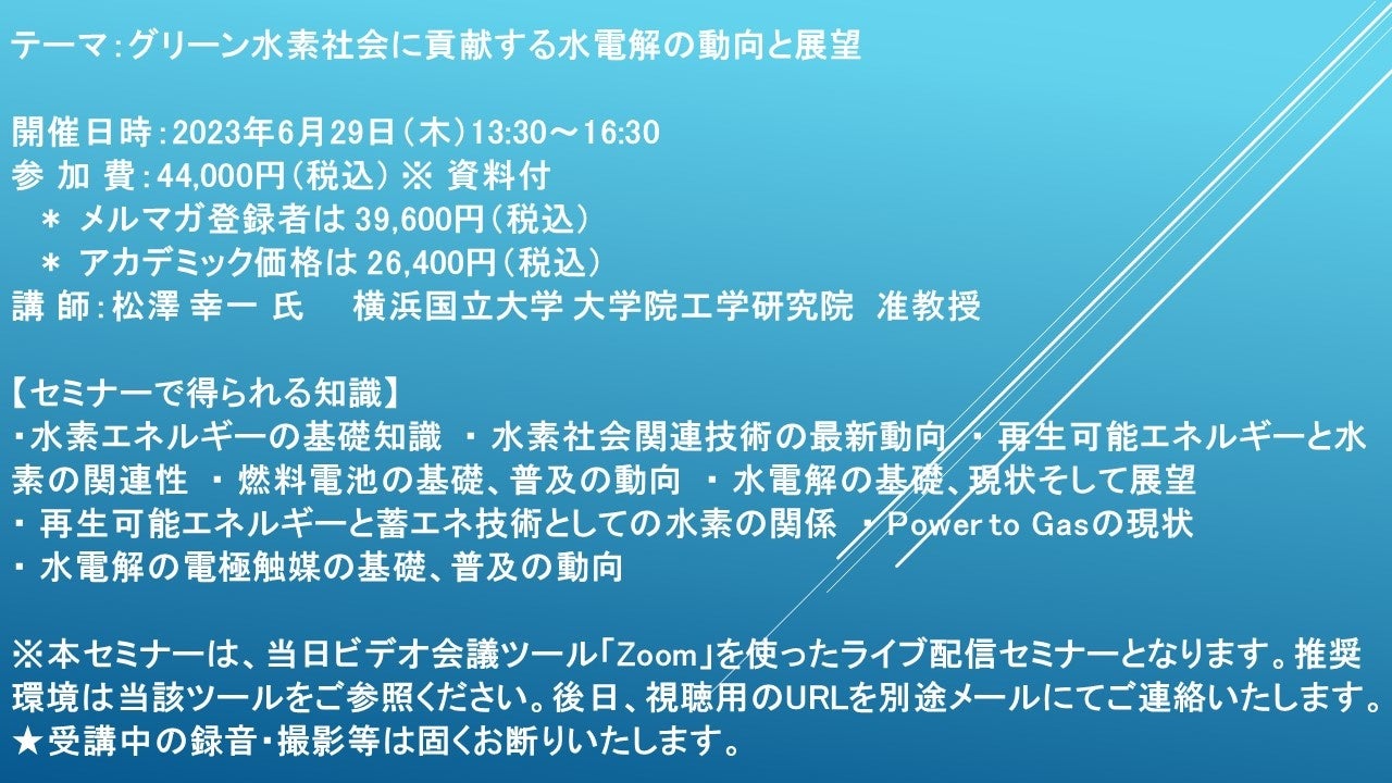 【ライブ配信セミナー】グリーン水素社会に貢献する水電解の動向と展望 6月29日(木)開催 主催:(株)シーエムシー・リサーチ