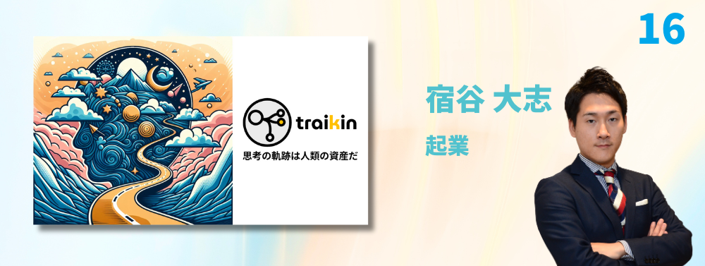 思考の「結果」ではなく「軌跡」にフォーカスをあて、軌跡の力で探究と創造を加速するツール。プロダクト名の『traikin』は、 thinking と trail(小道・軌跡)を合わせた造語。