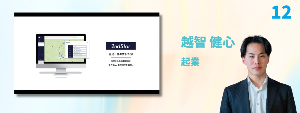 近畿大学在学中。家業の土木業に測量士補として従事し、インフラ工事に携わる。大学入学後、株式会社2ndStarを立ち上げる。現在はインフラへの知識と事業開発の経験を活かし、インフラ維持管理ツールの開発に注力。