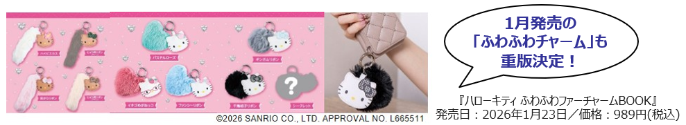 また、2026年2月13日発売の『SANRIO CHARACTERS きらきらフルーツチャームBOOK』は、発売後完売店が続出し、2026年1月23日発売の『ハローキティ ふわふわファーチャームBOOK』とともに重版を検討するなど、「宝島社トイズ」シリーズは多くのお客様よりご好評をいただいています。