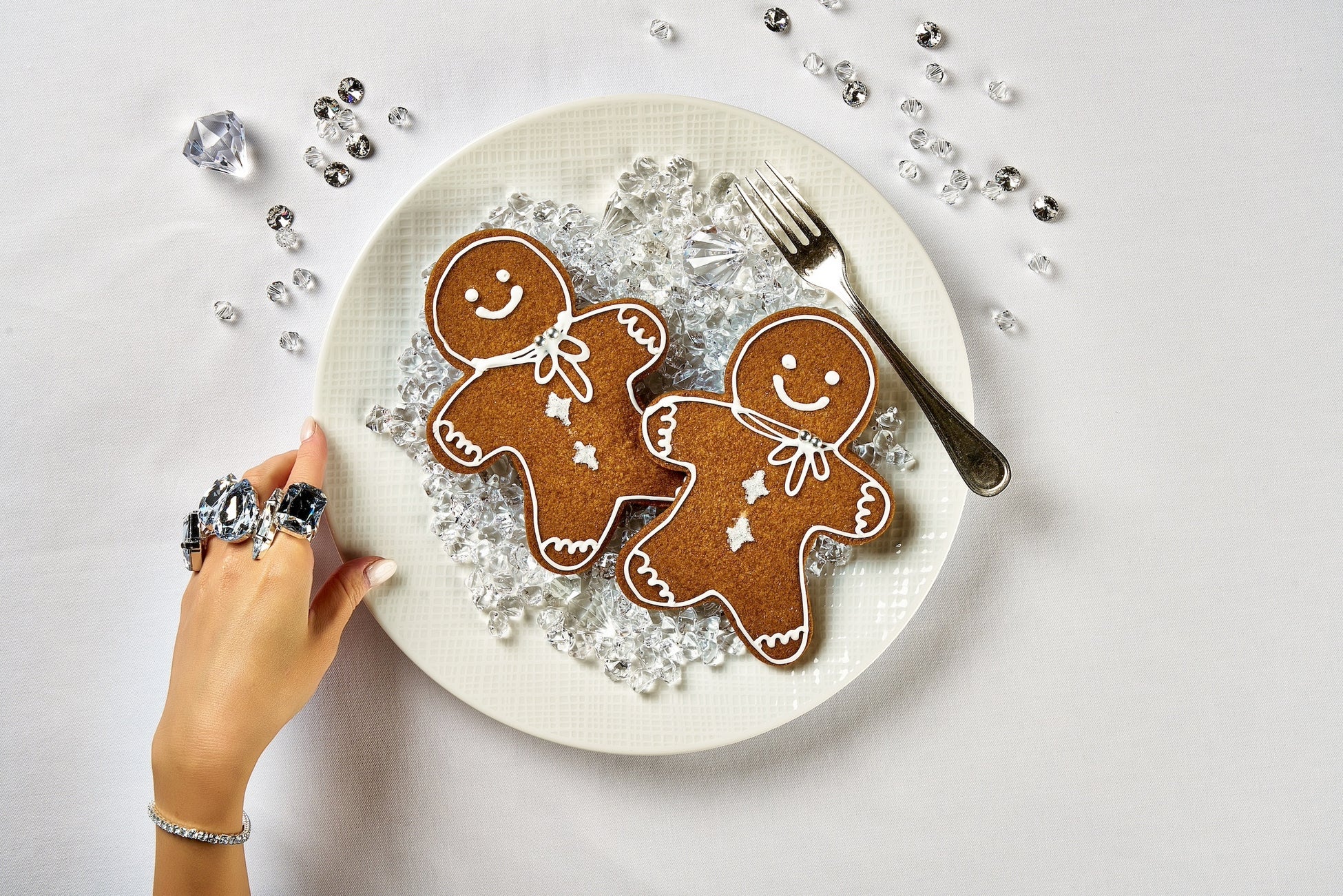 スパイスの芳香と蜂蜜の優しい甘さが調和する、クリスマスを象徴する人型クッキー。首元に添えた銀のきらめきとダイヤのボタンが、聖夜にさりげない輝きをもたらします。