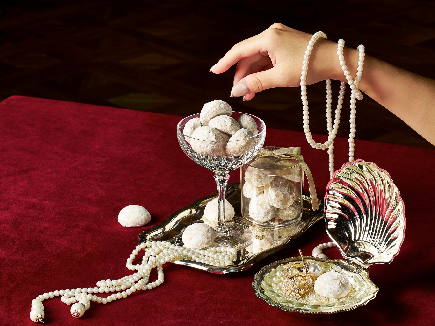 雪の結晶を思わせる白い輝きを纏った、アーモンドのスノーボールクッキー。ほろりとほどける口どけとやわらかな甘さが、心をほどくような温かな余韻を残します。