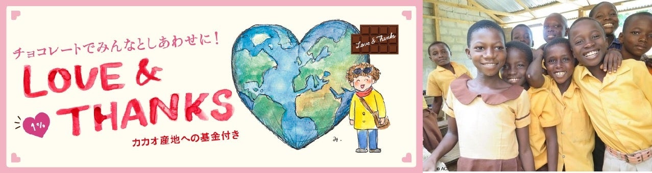 「幸福のチョコレート®」が販売するチョコレートはすべて「LOVE & THANKS基金」付きです。税抜価格の約1%が「スマイル・ガーナプロジェクト」に活用されています。このプロジェクトは、カカオ農家の経済的な自立支援や、教育の必要性について生産者へ啓蒙活動することで、子どもたちが児童労働から開放されるのと同時に、質の良い教育を受けられることを目指す活動です。プロジェクトスタート以来10年、これまでに550人以上の子どもたちを児童労働から救い、約4,500人の子どもの教育を支援してきました。現在、このプロジェクトに取り組む認定NPO法人[ACE(エース)]へ、2012年から継続して「LOVE & THANKS基金」をお渡ししています。また、これまでの拠出総額は2010年〜2021年10月までの累計で26,183,764円となりました。(ACE以外の団体への拠出を含む)