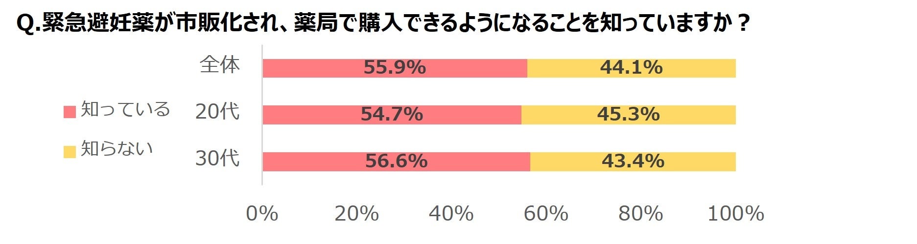 ●緊急避妊薬が市販化され、薬局で購入できるようになることの認知率は5割超