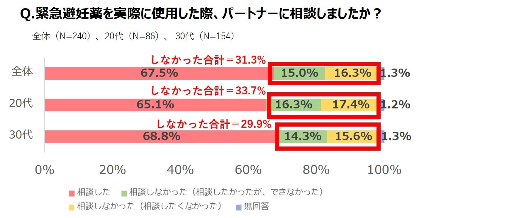 ●緊急避妊薬を使用した人の3割超が「事前にパートナーに相談しなかった」