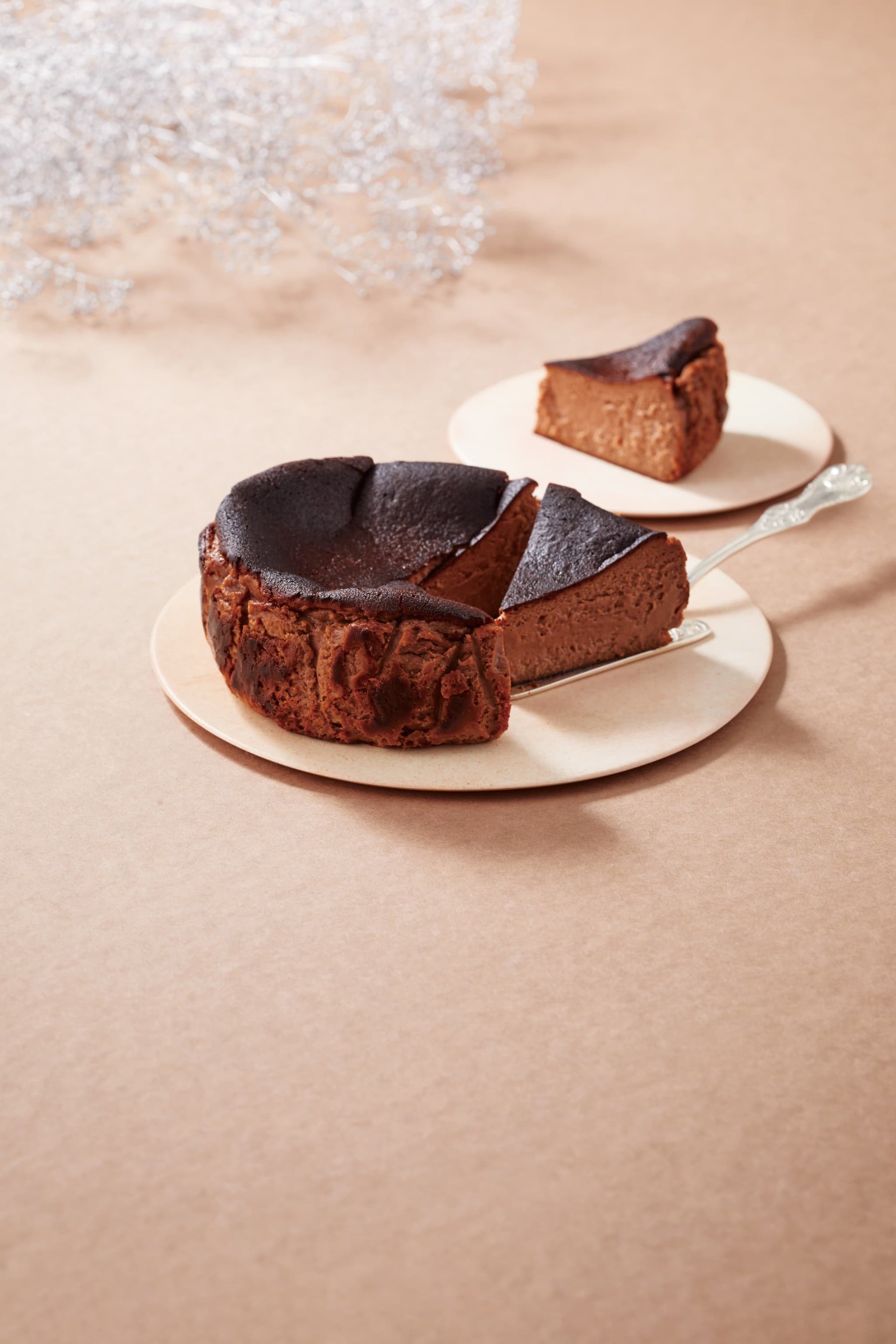 シンプルな素材で、濃厚なのに食べやすいブランドを代表する看板商品バスクチーズケーキに、やわらかく包み込むように上品な風味のチョコレートを合わせました。
