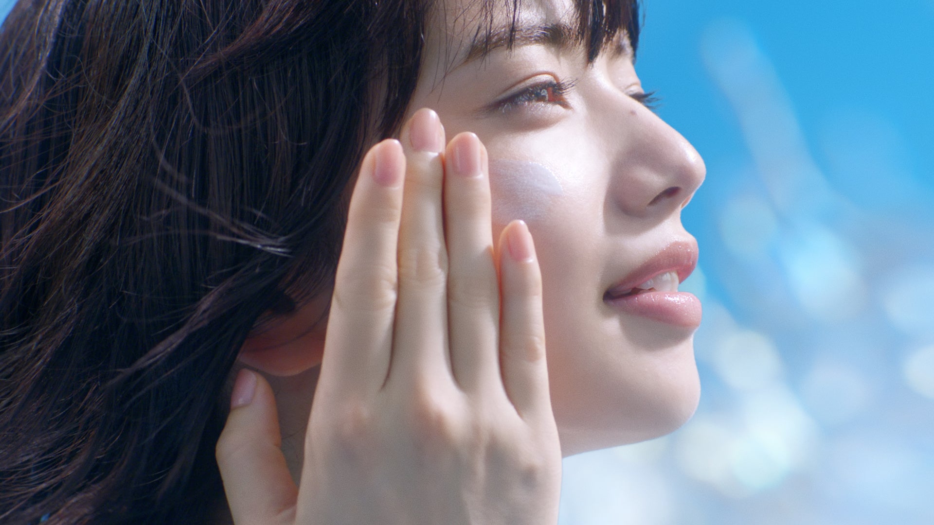 新CM「うるおいホールドUVジェル」篇では、太陽の下でシティライフを楽しむ小松さんが、「アネッサ パーフェクトUV スキンケアジェル N」を塗るシーンから始まります。力強くジャンプして太陽に近づいていくと、太陽の光を浴びて小松さんの肌が輝き、近づくほどに美しくなっていく。 その秘密は、スキンケアベースのジェルがうるおいを閉じ込めシミも防ぐから。アネッサの「うるおいホールドUVジェル」を使うことで、心も身体も前向きになり、充実した毎日を過ごしてほしいという願いを込めて制作しています。