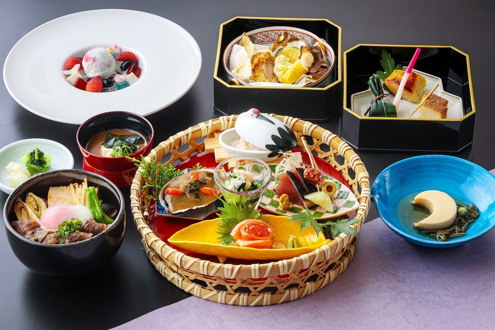 ホテルニューオータニ幕張 日本料理「千羽鶴」では、今夏、幕張メッセ 幕張イベントホールにて開催される、舞台『刀剣乱舞』七周年感謝祭 -夢語刀宴會-とのコラボレーション第二弾として、「舞台『刀剣乱舞』感謝祭コラボ御膳」を2023年8月1日(火)~8月7日(月)まで7日間限定で販売いたします。