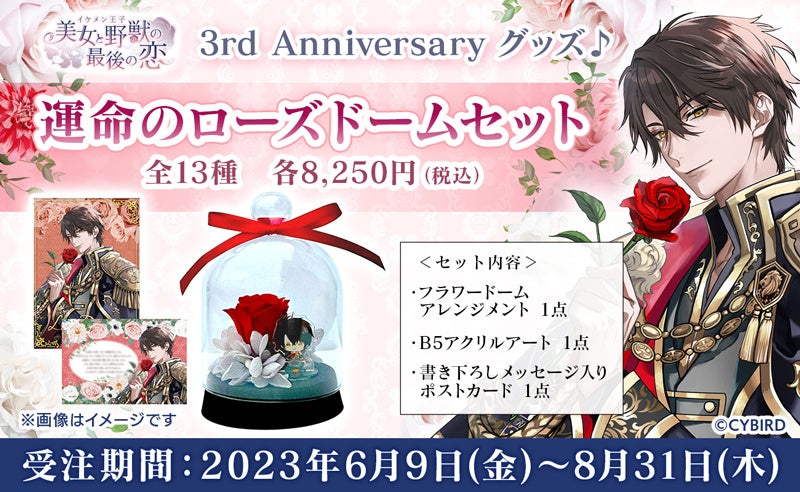 『イケメン王子 美女と野獣の最後の恋』3rd Anniversaryを記念した「3rd Anniversary 運命のローズドームセット」がnademaにて受注予約を開始しました。