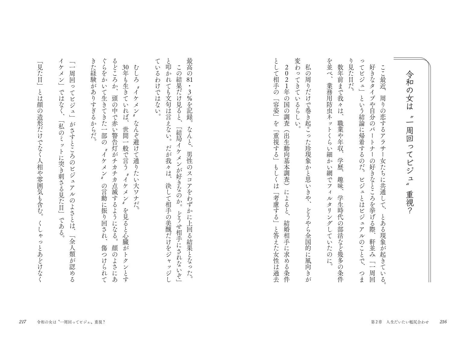 第2章はこれまでの著書『恋愛の方程式って東大入試よりムズイ』『そろそろいい歳というけれど』でも人気を集めてきた恋愛、結婚を中心にしたエッセイとなっています。