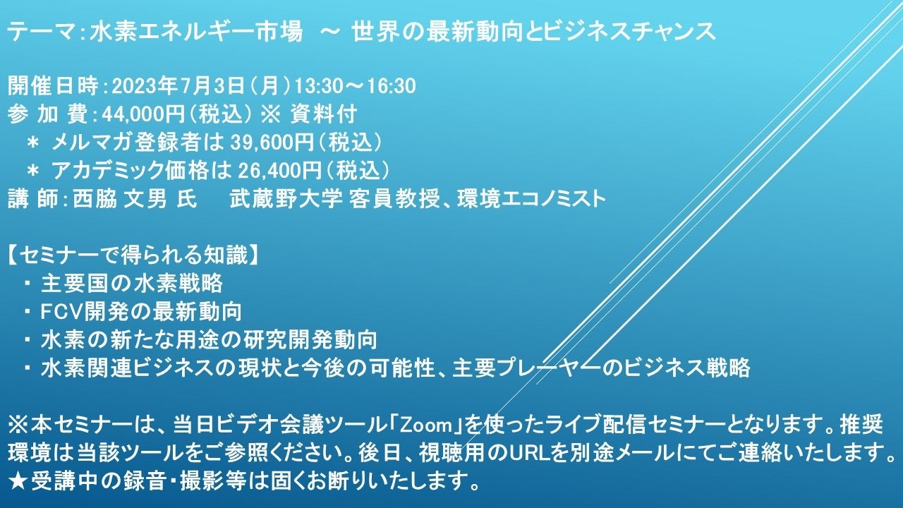 【ライブ配信セミナー】水素エネルギー市場 ~ 世界の最新動向とビジネスチャンス 7月3日(月)開催 主催:(株)シーエムシー・リサーチ