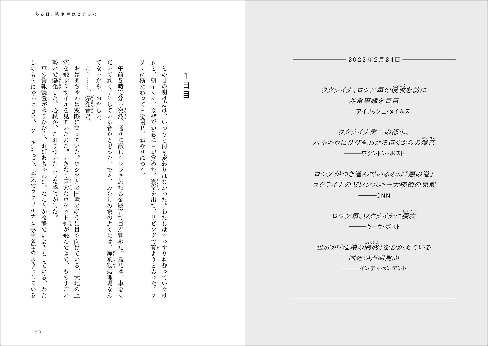 本書は、2022年10月に欧米で『You Don’t Know What War Is : The Diary of a Young Girl from Ukraine』として書籍化され、世界中で大きな反響を呼んだ書籍の邦訳版。すでに20か国以上で翻訳版が出版されており、2023年2月には朝日新聞でも「現代版のアンネの日記」として取り上げられた話題書です。