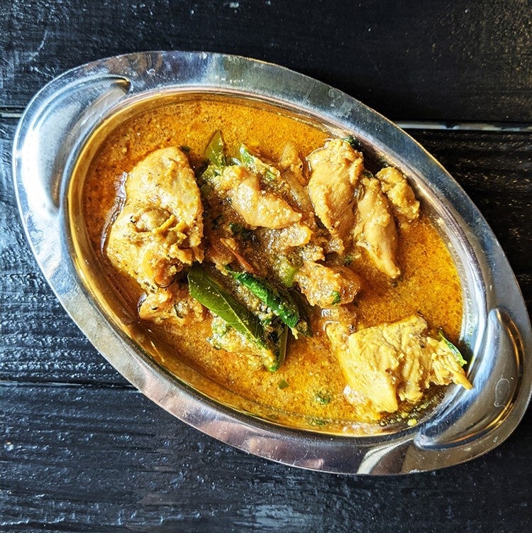 鹿児島県内産の「桜島どり」を使用した南インドカレーと副菜のついたプレートです。