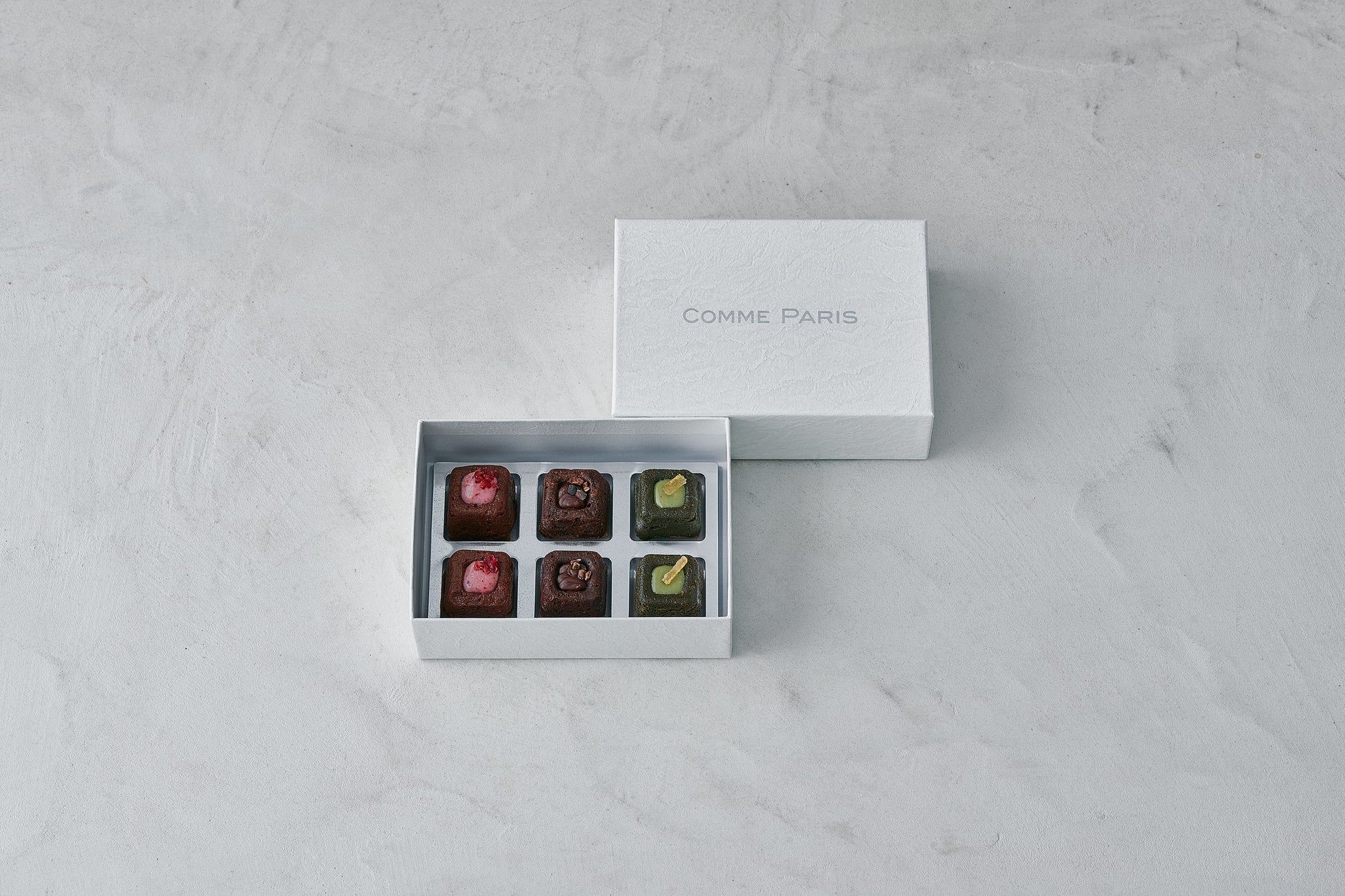 〈COMME PARIS(コムパリ)〉Trois Fondants(トロワ・フォンダン)6個入(フォンダンショコラ、抹茶フォンダンショコラ、ベリーフォンダンショコラ×各2) 2,890円/1階イベント(八重洲側入口前)