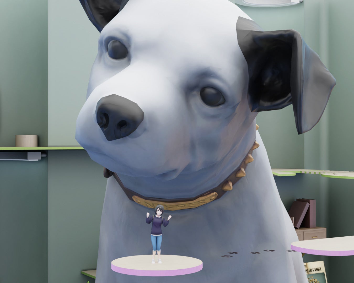 株式会社JVCケンウッド・デザインによる「ニッパーとあそぼう サウンドパーク」がターミナルと仮想伊勢丹新宿店の中間地点にオープン。「Victor」のブランドアイコンである犬の「ニッパー」の大きな像を中心としたパークで、ターミナルからもその大きな姿が見えます。Victorの動画が流れる仮想アルタビジョンの前のターミナルから「ニッパー」の足跡をたどっていくとパークへ。ジャンプなどで「ニッパー」の顔の近くまで登れるようになっており、スロープの途中にはニッパーの絵本「NIPPER-His Master’s Voice-」や、Victor製品が並んでいます。ブランドアイコンや製品など、「Victor」の世界観を体感できるエリアとなっています。