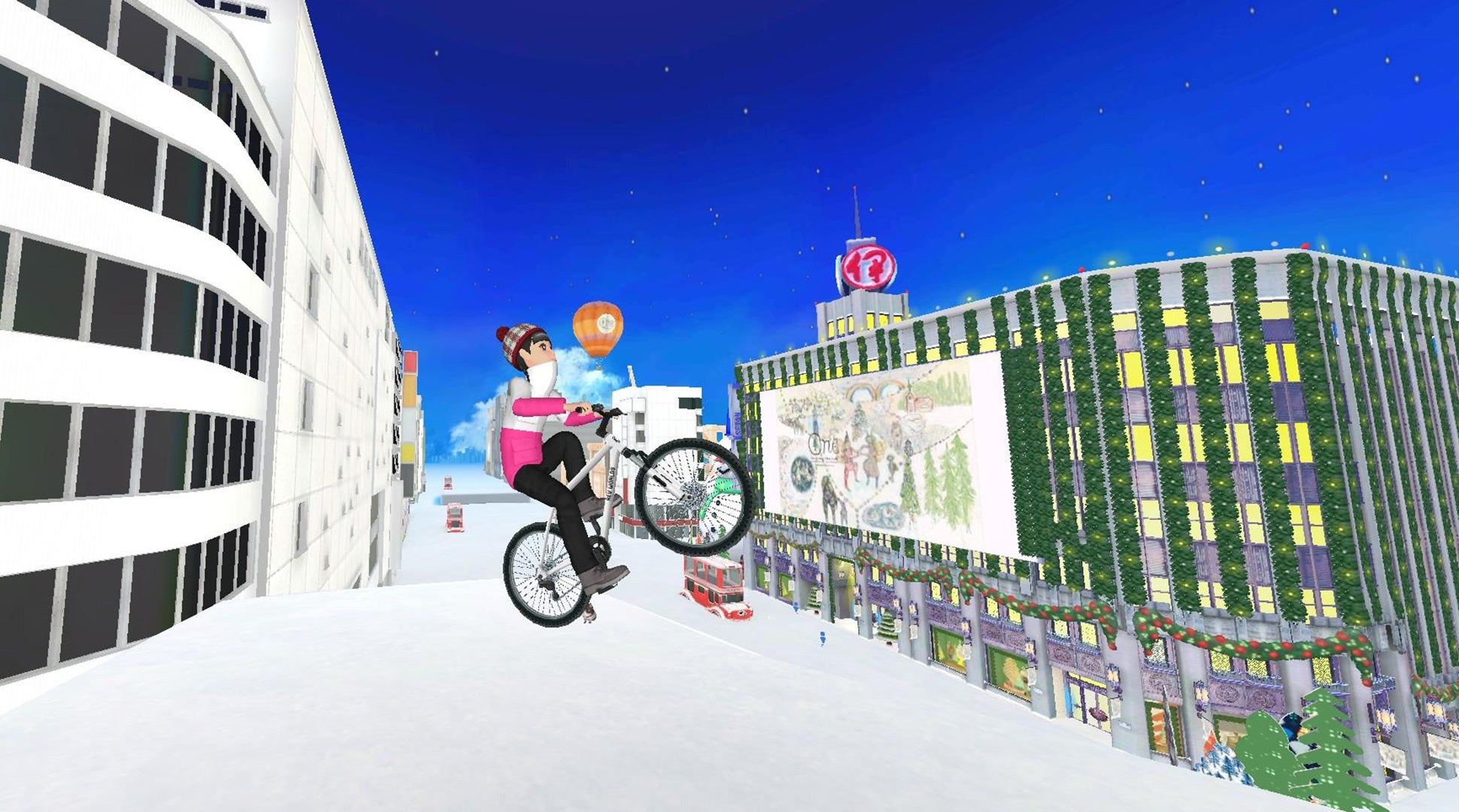 “大雪”のワールド内には「マウンテンバイク」が登場し、雪の上のモトクロスが楽しめます。またワールドは、昼と夜の時間帯で変化し、昼の世界・夜の世界の両方をお楽しみいただけます。