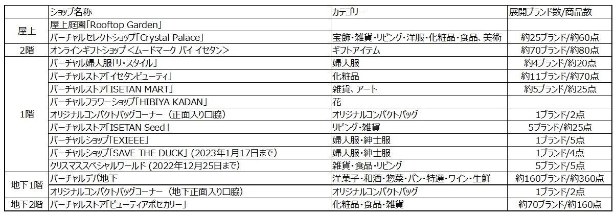 - REV WORLDS内仮想伊勢丹新宿店のエリア・ショップ一覧(11月24日時点)