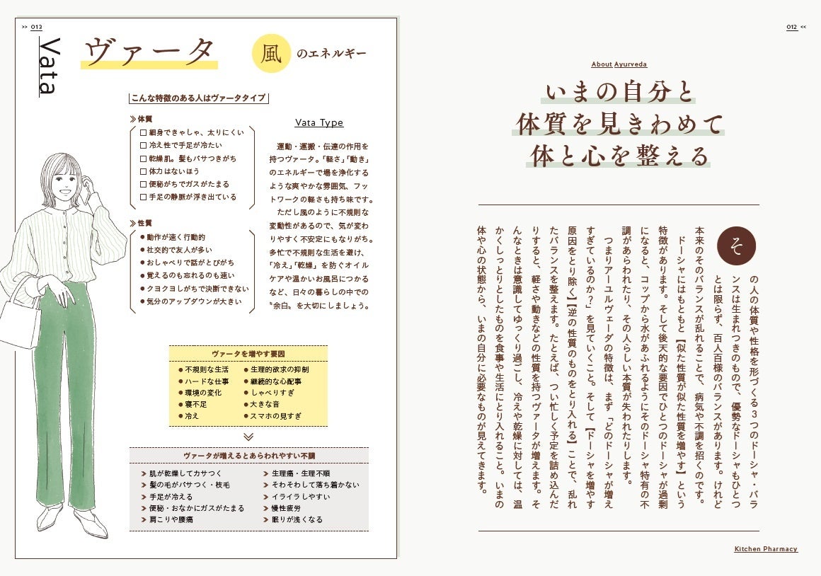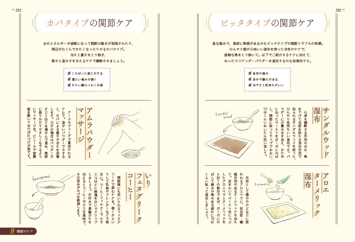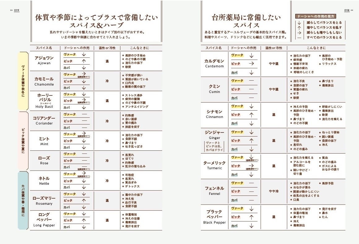 インド発祥の伝統医療「アーユルヴェーダ」をベースにした、ナチュラルなセフルケアを174種収録。教えるのは人気アーユルヴェーダ講師のブラフ弥生さん。「病院へ行くほどでもない不調のケアは、アーユルヴェーダの得意分野です。この本では、自分でスパイスやハーブを調合してドリンクやケアツールをつくり、楽しみながら自分をケアする方法をお伝えしています」。