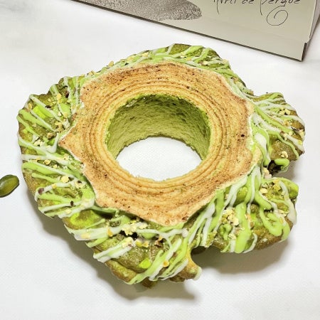 会場限定商品。フランス・ピレネー地方の伝統菓子ガトーピレネーを濃厚な味わいのピスタチオを使用。芳醇な発酵バターの味わいと、上質なピスタチオの風味豊かな魅力を最大限に引き出した逸品。
