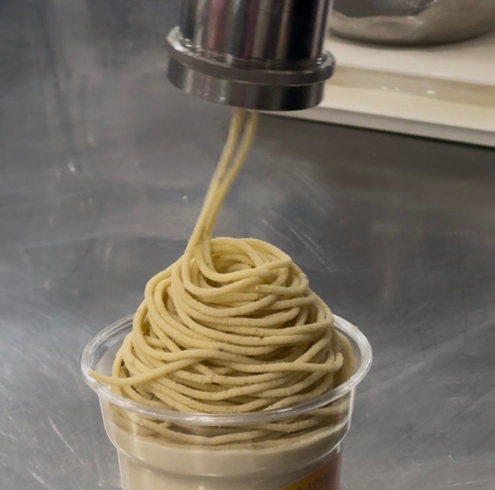 原材料は低温殺菌牛乳、厳選した栗ペースト、純生クリームのみ。濃厚なモンブランシェイクに、クーベルチュールチョコチップをトッピング。