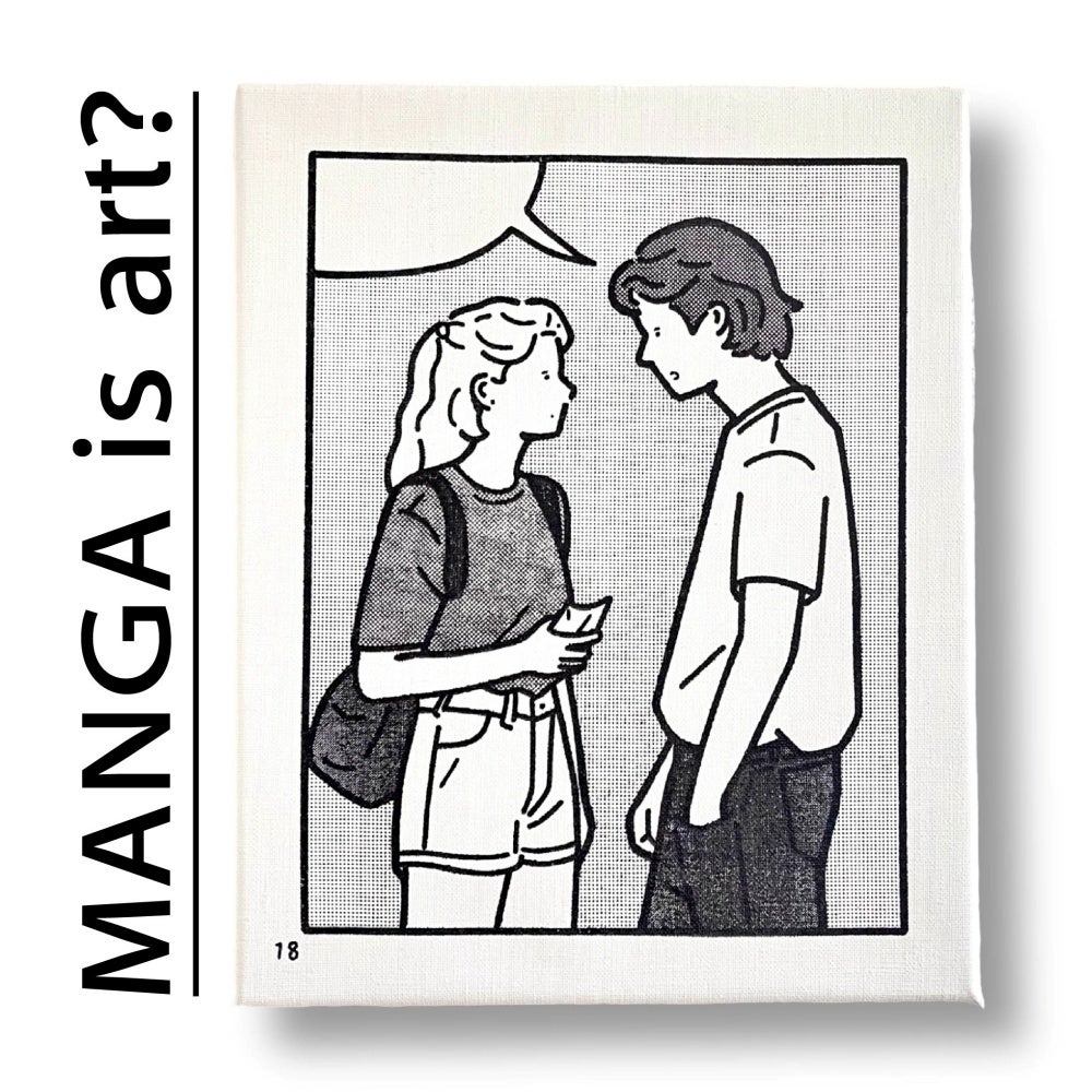 漫画とアートを用い、物事の境界や定義に対する疑問を投げかけた作品。何をもってアートなのか、何をもって漫画なのか、考えることを通して面白みや生きていく上での気づきを得ることをテーマとしています。また作品を普段のお買い物の様に気軽に見ていただけるように、と海外のコミックを彷彿とさせるパッケージに入れて展示。シルクスクリーンによる微妙な差がありますので、自分だけのお気に入りを見つけていただけます。