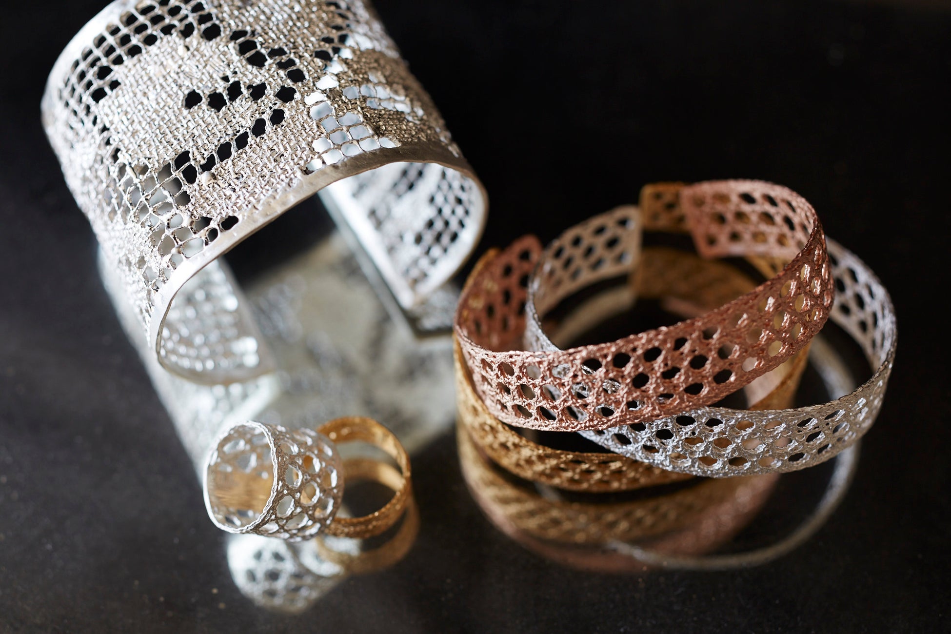 デザイナー井本氏が普段から愛用しており、日頃からお守りのように身に付けている<MAISON RUBUS./メゾンルーバス>のジュエリー。オリジナルラインから、天然石を使用したネックレスや人気のレースシリーズをご紹介いたします。