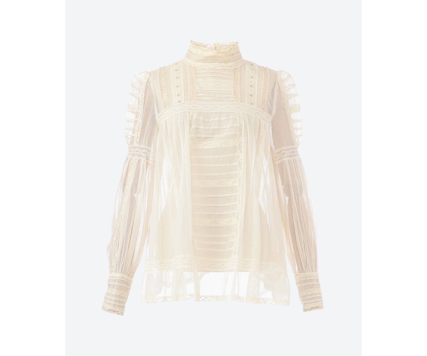 レースブラウスは、デビュー当時から、ずっとフランスのリバーレースを使用し、レースを細かく接ぎ、手間と時間を惜しまず作ってきたアイテム。コットンのチュールレースを手作業でピンタックを折っていくなど、工場との試行錯誤に大変時間を割いたシリーズとなります。