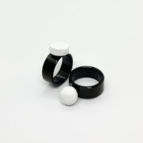 Small Factory Ring「町工場リング」は現代美術作家である田添かおりがデザインを手がけ、東京都大田区にある町工場の矢澤製作所が中心となって製作されているアートジュエリー作品です。大田区には金属など精密加工を行う町工場が多数あり、そこで産業向けに生産される小さな部品をヒントに、各工場が持つ特殊な技術を紹介する様々なコラボレーションモデルを展開してきました。今回は、新潟県燕市にある金属洋食器を手がける高桑金属株式会社の協力を経て製作された新作の琺瑯モデルをご紹介します。金属製品でありながら、琺瑯のぽってりとしたコーティングにより暖かみを感じられるシリーズです。