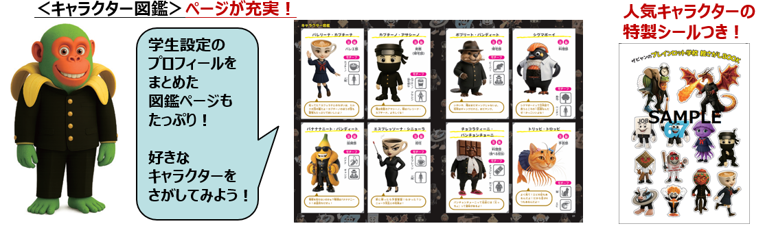 本書はYouTubeやTikTokで活躍し、大ヒット曲「トゥントゥントゥンサフールに恋している」を生み出したザビャン氏の解釈に基づいて描かれた「ブレインロット学校」を舞台に、登場キャラクターの世界観をたっぷり楽しめる絵さがし本です。バレリーナ・カプチーナ、カプチーノ・アサシーノ、チンパンジーニ・バナニーニなど、100体以上の個性豊かなキャラクターが登場。教室やプール、遠足先の公園などのにぎやかな場面にあふれかえるキャラクターたちの中から、指定されたキャラクターやモチーフをさがして遊べます。図鑑ページも充実し、大人も子どもも楽しめる一冊です。さらに、うれしい特製シールつき!
