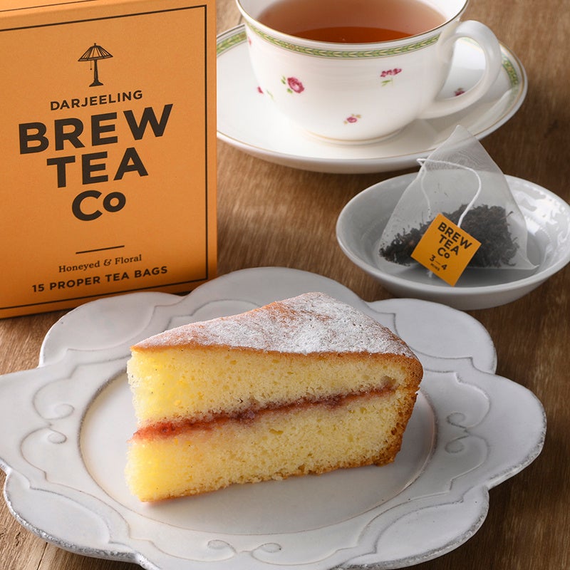 〈レイジーデイジーベーカリー〉 手前:ヴィクトリアスポンジ 562円(1カット)※各日30点限り〈ブリューティーカンパニー〉 奥:ブリューティーカンパニー ダージリン 1,944円 (3g×15包)