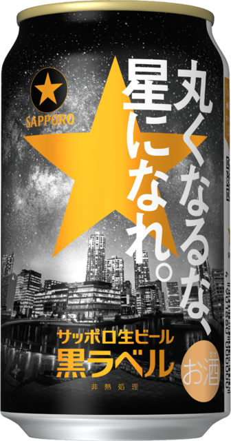 サッポロ生ビール黒ラベル「丸くなるな、☆星になれ。」缶