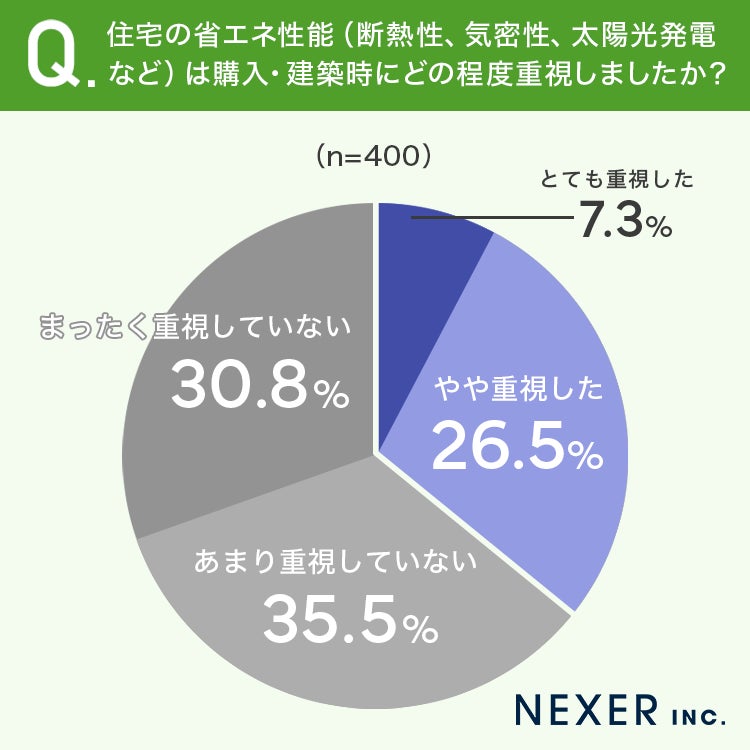 続いて、住宅の購入・建築時に省エネ性能をどの程度重視したかについて聞いてみました。