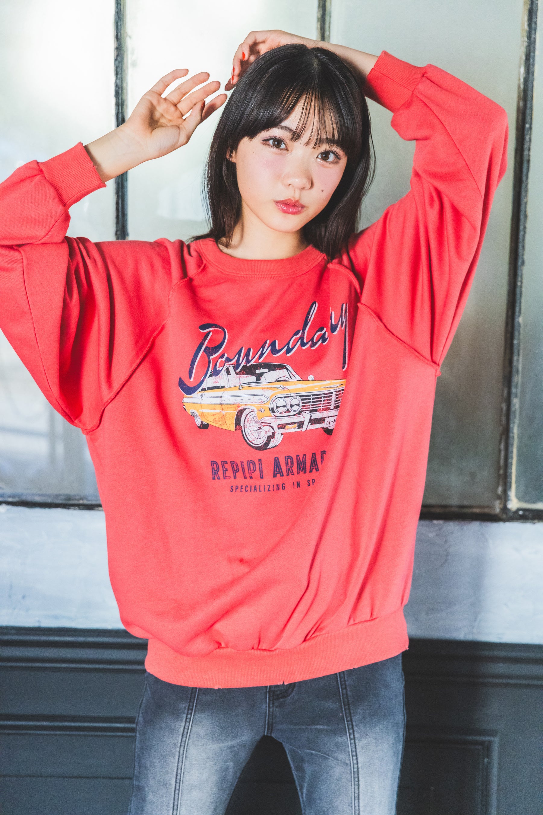 カジュアルチーム待望のヴィンテージカープリント、バックスタイルにもこだわったビッグサイズのゆったりトップス。